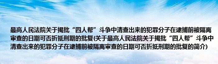 本文关于最高人民法院关于揭批“四人帮”斗争中清查出来的犯罪分子在逮捕前被隔离审查的日期可否折抵刑期的批复的简介就讲解完毕,希望对大家有所帮助。