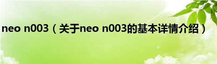 本文关于neo n003的基本详情介绍就讲解完毕,希望对大家有所帮助。