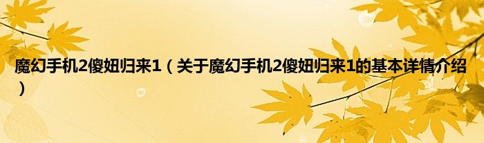 本文关于魔幻手机2傻妞归来1的基本详情介绍就讲解完毕,希望对大家有所帮助。