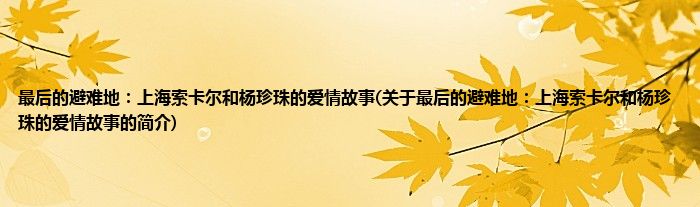 本文关于最后的避难地:上海索卡尔和杨珍珠的爱情故事的简介就讲解完毕,希望对大家有所帮助。