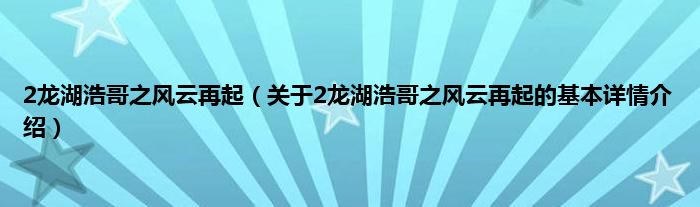 本文关于2龙湖浩哥之风云再起的基本详情介绍就讲解完毕,希望对大家有所帮助。