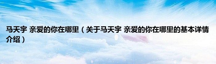 本文关于马天宇 亲爱的你在哪里的基本详情介绍就讲解完毕,希望对大家有所帮助。