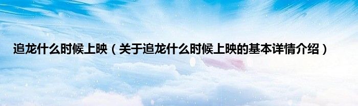 大家好我是小蝌蚪,追龙什么时候上映,关于追龙什么时候上映的基本详情介绍很多人还不知道,那么现在让我们一起来看看吧!