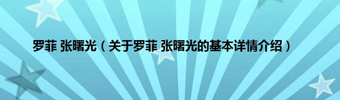 本文关于罗菲 张曙光的基本详情介绍就讲解完毕,希望对大家有所帮助。