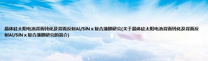 大家好,晶体硅太阳电池背面钝化及背面反射Al/SiNⅹ复合薄膜研究,关于晶体硅太阳电池背面钝化及背面反射Al/SiNⅹ复合薄膜研究的简介很多人还不知道,现在让我们一起来看看吧!