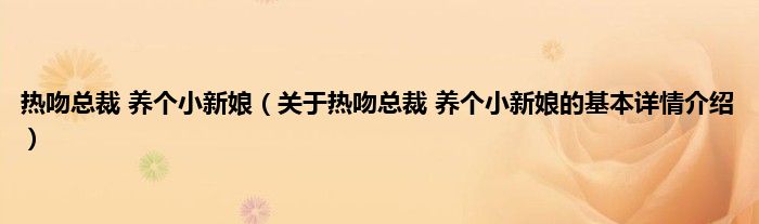 本文关于热吻总裁 养个小新娘的基本详情介绍就讲解完毕,希望对大家有所帮助。