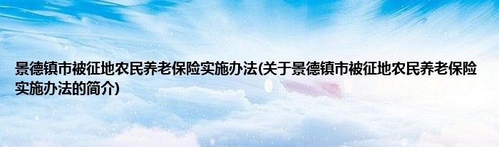 大家好,景德镇市被征地农民养老保险实施办法,关于景德镇市被征地农民养老保险实施办法的简介很多人还不知道,现在让我们一起来看看吧!