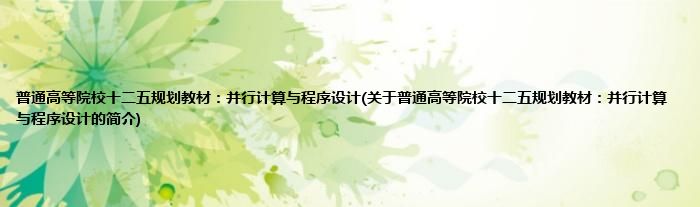 本文关于普通高等院校十二五规划教材:并行计算与程序设计的简介就讲解完毕,希望对大家有所帮助。