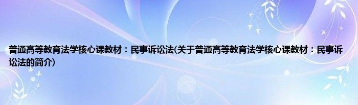 本文关于普通高等教育法学核心课教材:民事诉讼法的简介就讲解完毕,希望对大家有所帮助。