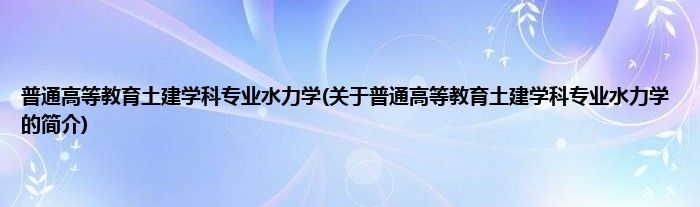 本文关于普通高等教育土建学科专业水力学的简介就讲解完毕,希望对大家有所帮助。