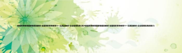 大家好,普通高等教育国家级规划教材·全国高职高专教育十一五规划教材·企业管理实务,关于普通高等教育国家级规划教材·全国高职高专教育十一五规划教材·企业管理实务的简介很多人还不知道,现在让我们一起来看看吧!