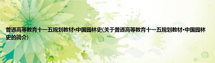 1、 《普通高等教育十一五规划教材·中国园林史》是2008年中国电力出版社出版的图书。