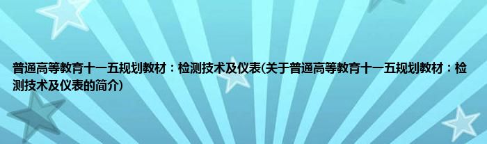 1、 《普通高等教育十一五规划教材检测技术及仪表》是2010年中国电力出版社出版的图书。