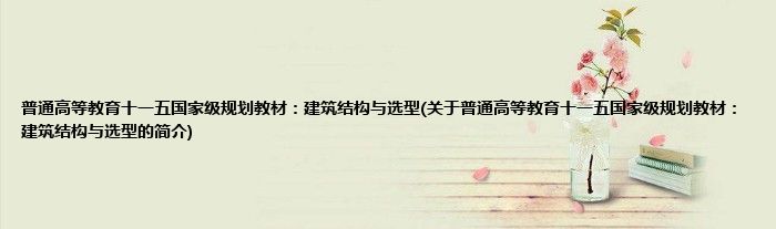 本文关于普通高等教育十一五国家级规划教材:建筑结构与选型的简介就讲解完毕,希望对大家有所帮助。