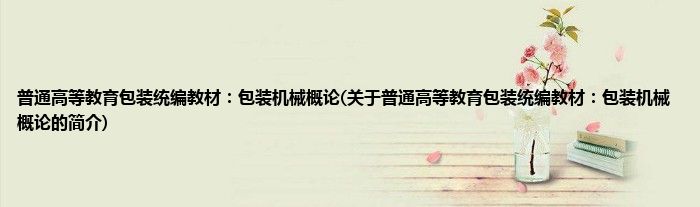 1、 《普通高等教育包装统编教材:包装机械概论(第3版)》是普通高等教育包装统编教材,是包装工程专业及相近专业的包装机械课程教材。