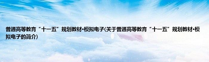 本文关于普通高等教育“十一五”规划教材·模拟电子的简介就讲解完毕,希望对大家有所帮助。