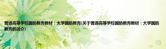 大家好,普通高等学校国防教育教材:大学国防教育,关于普通高等学校国防教育教材:大学国防教育的简介很多人还不知道,现在让我们一起来看看吧!