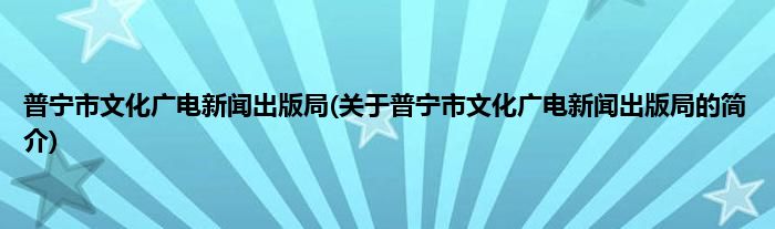 普宁市文化广电新闻出版局(关于普宁市文化广电新闻出版局的简介)