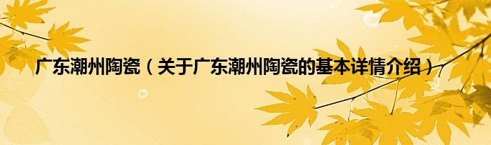 本文关于广东潮州陶瓷的基本详情介绍就讲解完毕,希望对大家有所帮助。