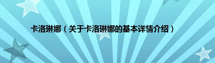 本文关于卡洛琳娜的基本详情介绍就讲解完毕,希望对大家有所帮助。