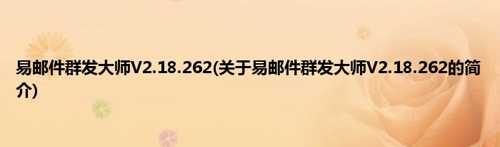 易邮件群发大师V2.18.262(关于易邮件群发大师V2.18.262的简介)
