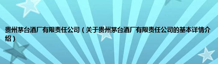 本文关于贵州茅台酒厂有限责任公司的基本详情介绍就讲解完毕,希望对大家有所帮助。