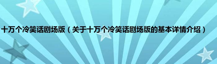 本文关于十万个冷笑话剧场版的基本详情介绍就讲解完毕,希望对大家有所帮助。