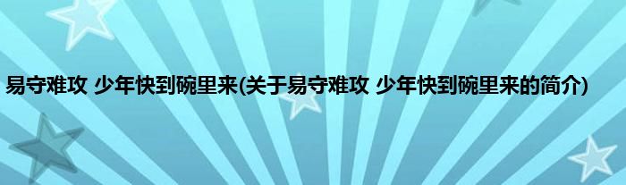 本文关于易守难攻,少年快到碗里来的简介就讲解完毕,希望对大家有所帮助。