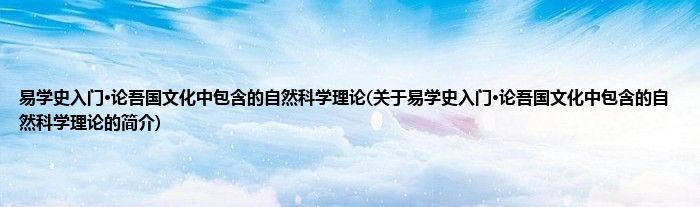 本文关于易学史入门·论吾国文化中包含的自然科学理论的简介就讲解完毕,希望对大家有所帮助。