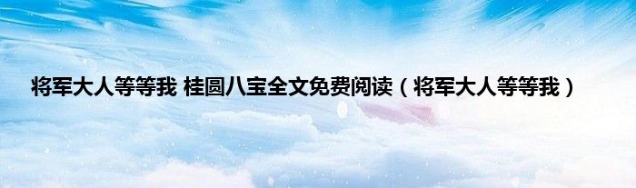 大家好,小问来为大家解答以上问题。将军大人等等我 桂圆八宝全文免费阅读,将军大人等等我这个很多人还不知道,现在让我们一起来看看吧!