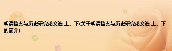1、 《明清档案与历史研究论文选(上、下)》是国际文化出版公司出版的图书。