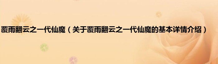 本文关于覆雨翻云之一代仙魔的基本详情介绍就讲解完毕,希望对大家有所帮助。