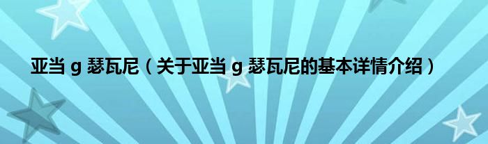 本文关于亚当 g 瑟瓦尼的基本详情介绍就讲解完毕,希望对大家有所帮助。