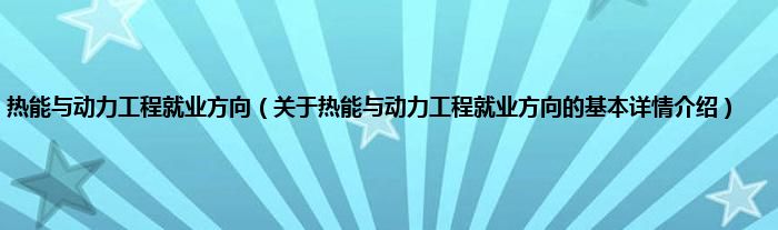 本文关于热能与动力工程就业方向的基本详情介绍就讲解完毕,希望对大家有所帮助。