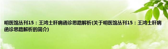 本文关于明医馆丛刊15:王鸿士肝病函诊思路解析的简介就讲解完毕,希望对大家有所帮助。
