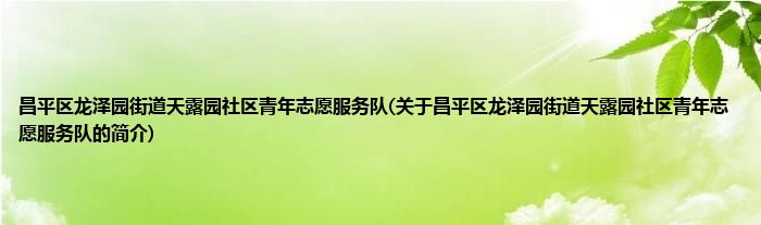 昌平区龙泽园街道天露园社区青年志愿服务队(关于昌平区龙泽园街道天露园社区青年志愿服务队的简介)