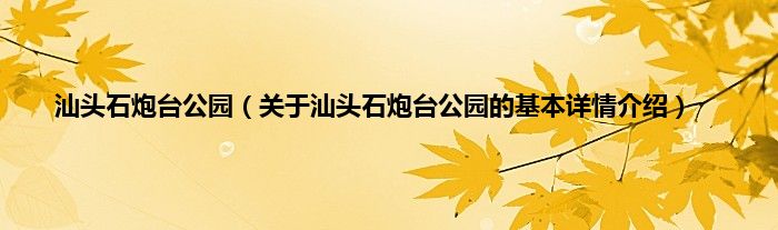 本文关于汕头石炮台公园的基本详情介绍就讲解完毕,希望对大家有所帮助。