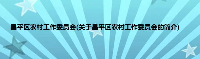 本文关于昌平区农村工作委员会的简介就讲解完毕,希望对大家有所帮助。
