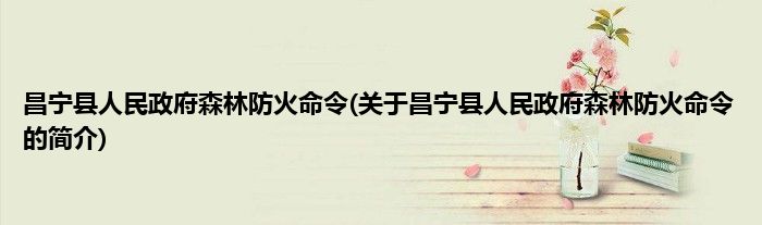昌宁县人民政府森林防火命令(关于昌宁县人民政府森林防火命令的简介)