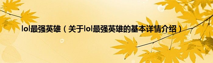 本文关于lol最强英雄的基本详情介绍就讲解完毕,希望对大家有所帮助。