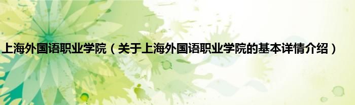 本文关于上海外国语职业学院的基本详情介绍就讲解完毕,希望对大家有所帮助。