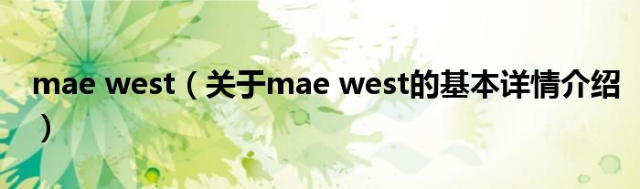 本文关于mae west的基本详情介绍就讲解完毕,希望对大家有所帮助。