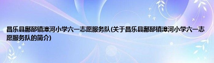 本文关于昌乐县鄌郚镇漳河小学六一志愿服务队的简介就讲解完毕,希望对大家有所帮助。