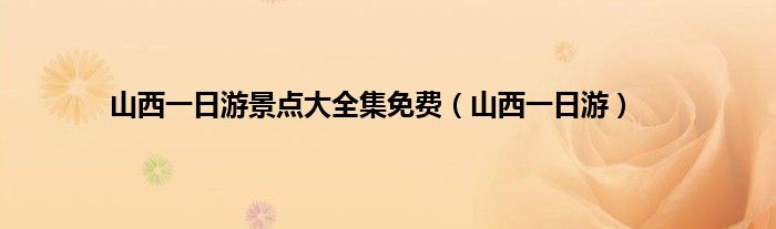 以上就是【山西一日游景点大全集免费,山西一日游】相关内容。
