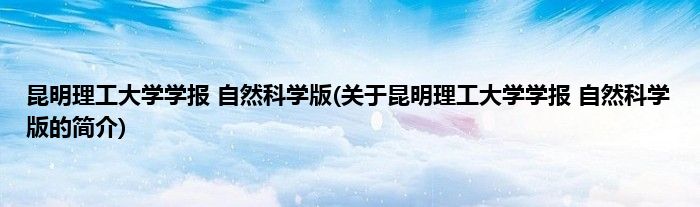 大家好,昆明理工大学学报 自然科学版,关于昆明理工大学学报 自然科学版的简介很多人还不知道,现在让我们一起来看看吧!