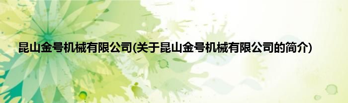 本文关于昆山金号机械有限公司的简介就讲解完毕,希望对大家有所帮助。