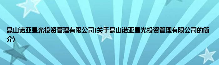 本文关于昆山诺亚星光投资管理有限公司的简介就讲解完毕,希望对大家有所帮助。