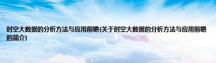 大家好,时空大数据的分析方法与应用前瞻,关于时空大数据的分析方法与应用前瞻的简介很多人还不知道,现在让我们一起来看看吧!