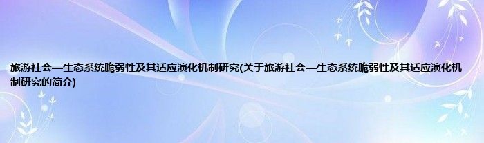 本文关于旅游社会—生态系统脆弱性及其适应演化机制研究的简介就讲解完毕,希望对大家有所帮助。