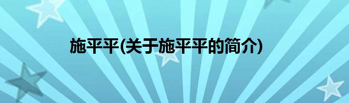 大家好,施平平,关于施平平的简介很多人还不知道,现在让我们一起来看看吧!
